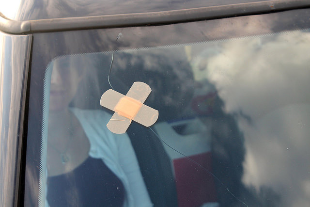 Еще один важный момент: возите с собой в машине обычный скотч. Как только заметите повреждение на лобовом стекле, сразу заклейте его скотчем, чтобы в стекло не попадала влага и грязь, в этом случае скол и трещина ремонтируются максимально хорошо.